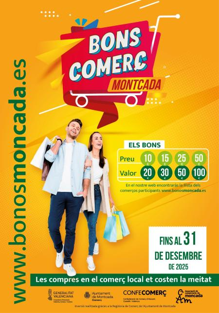 La iniciativa “Bonos Moncada”, puesta en marcha por el Ayuntamiento de Moncada a través de Confecomerç pretende incentivar el consumo de la ciudadanía en los comercios minoristas y la reactivación comercial del municipio.